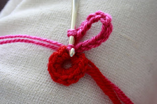 Ik heb geen gele of witte wol in huis. En toon het dan maar in rood en roze.
