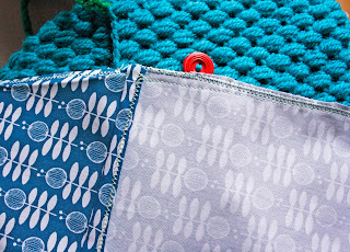 Nieuwe appelblauwzeegroene lapjes gehaakt, vulling erin en die laatste dan toch genaaid en niet gehaakt.