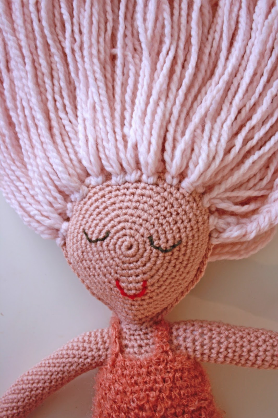 :) Buiten het jurkje, heb ik alle nodige wol bij Zeeman gekocht. Ideaal voor deze pop met donzig zacht haar.