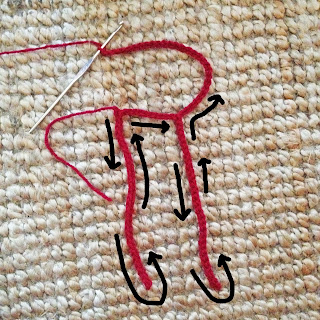 Knip je draad af op 10 cm en naai je begin- en einddraad in het vierkant in.